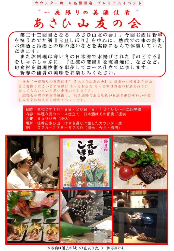 【1/19,26】一夜限りの美酒佳肴 あさひ山友の会@佳肴あさひ山