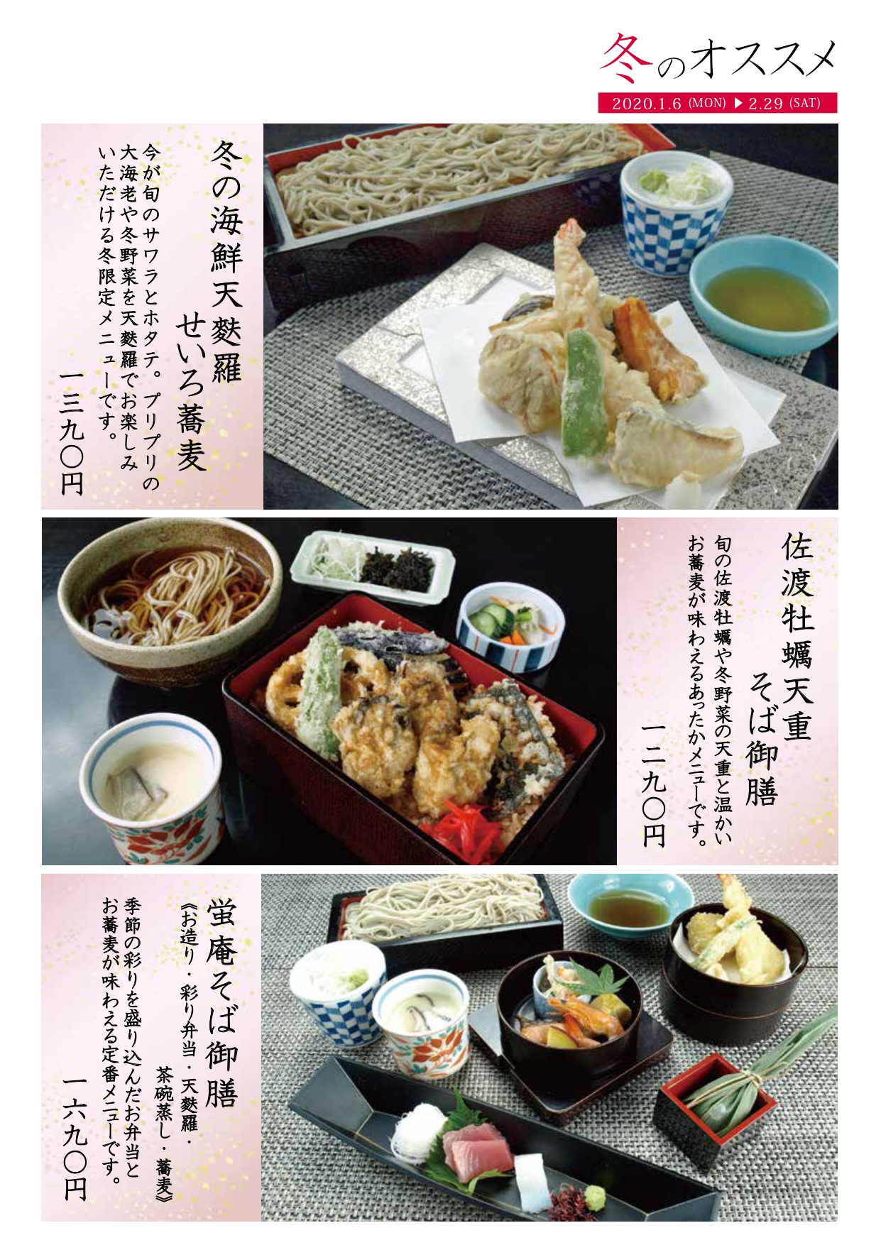 『冬の海鮮天麩羅せいろ蕎麦』『佐渡牡蠣天重そば御膳』といった、