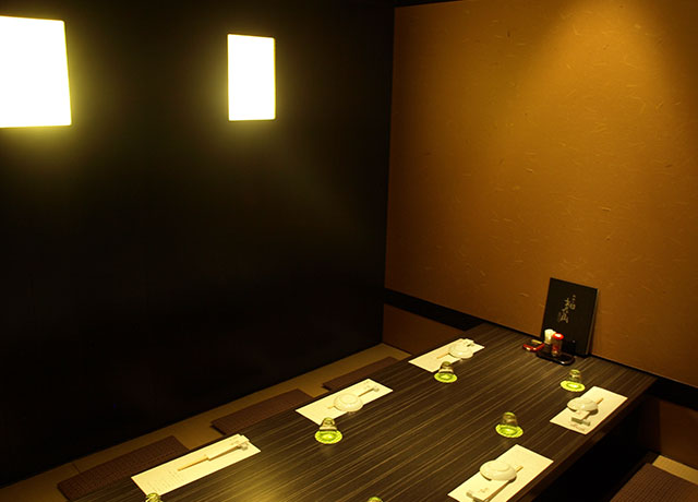 店内は酒蔵をイメージした落ち着いた佇まい。ガラス張りのカウンター席や、普段使いから様々な場面でご利用頂ける大小個室を完備。