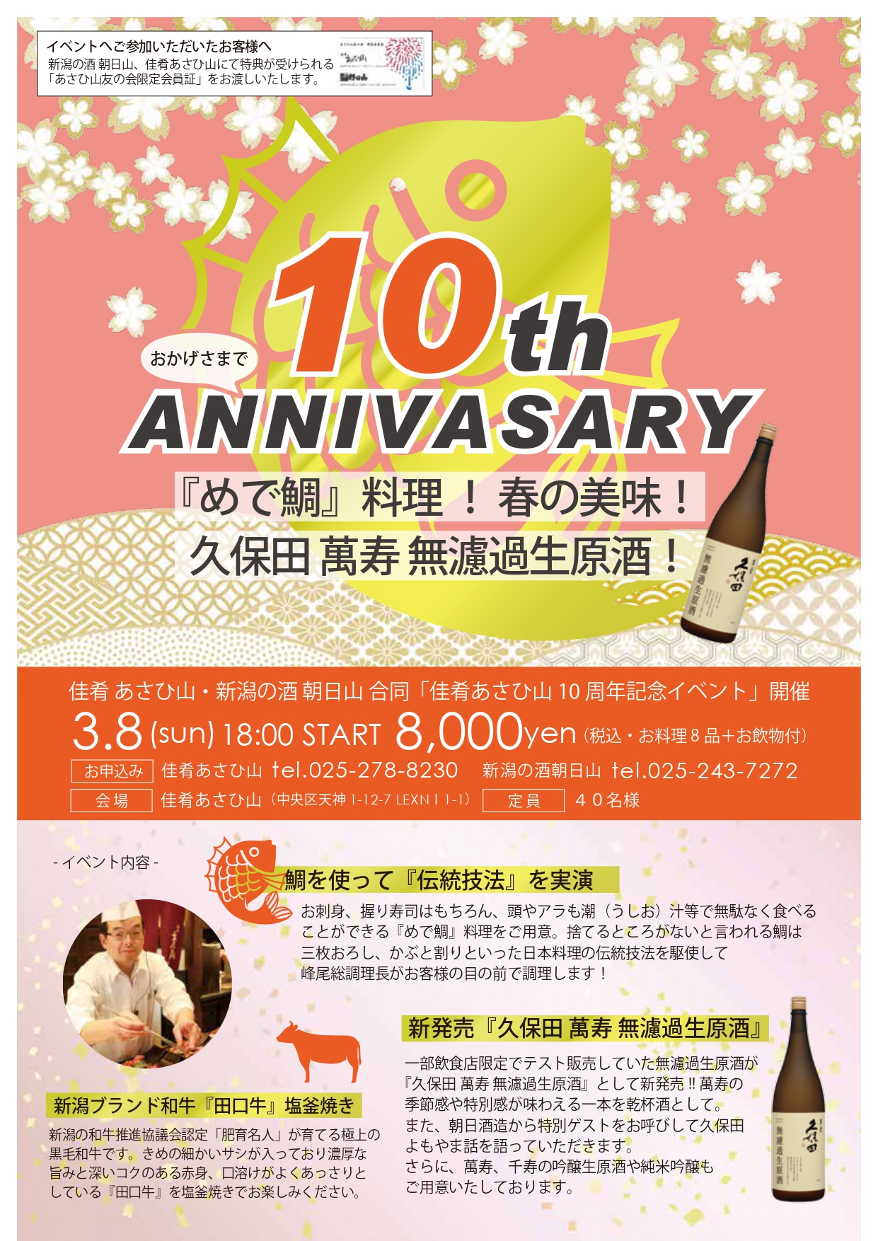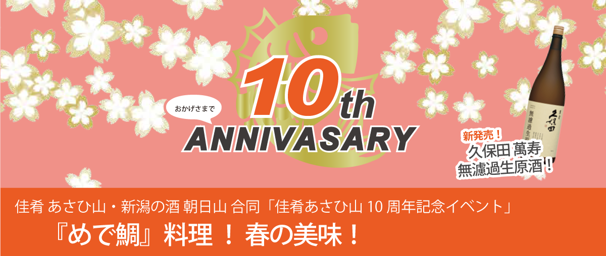 佳肴あさひ山10周年を記念して、佳肴 あさひ山・新潟の酒 朝日山の合同イベントを開催いたします。