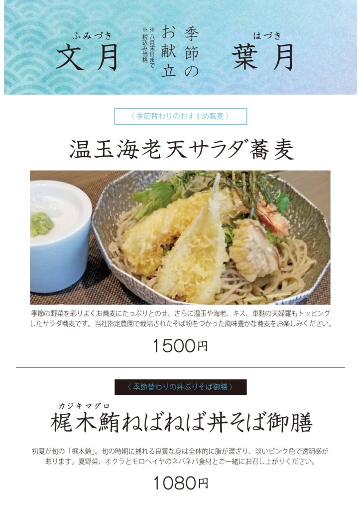 さらに、7・8月限定の蕎麦ランチも登場します。ぜひこちらもご賞味くださいませ。