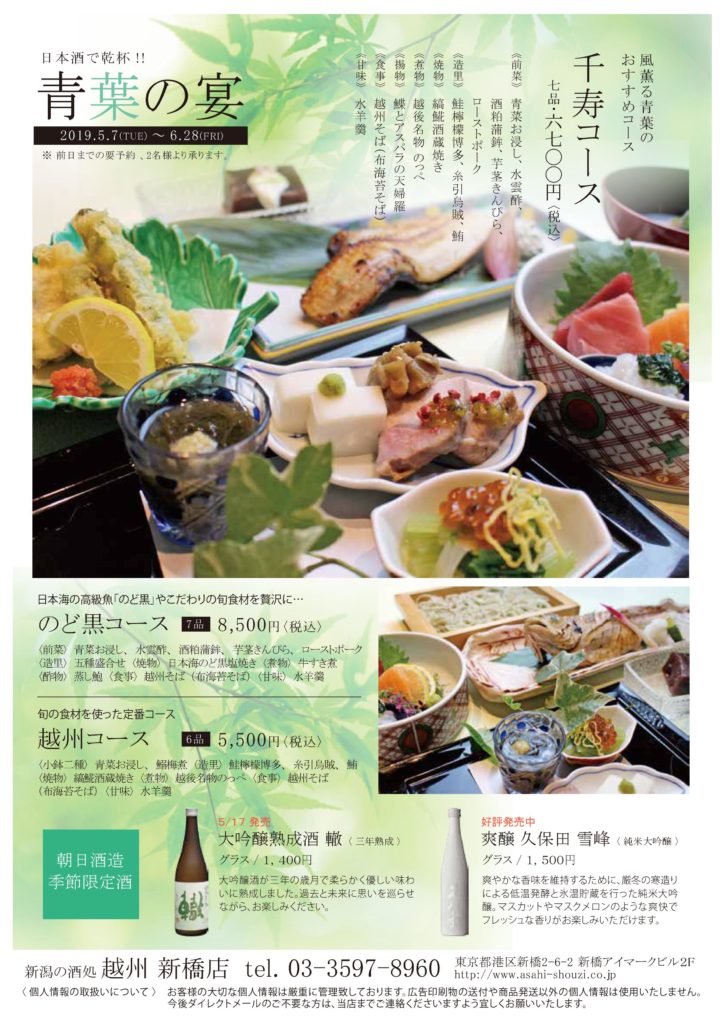 越州新橋店では、「風薫る青葉のおすすめコース」と題しまして、旬の食材を使った各種コースをご用意いたしました。
