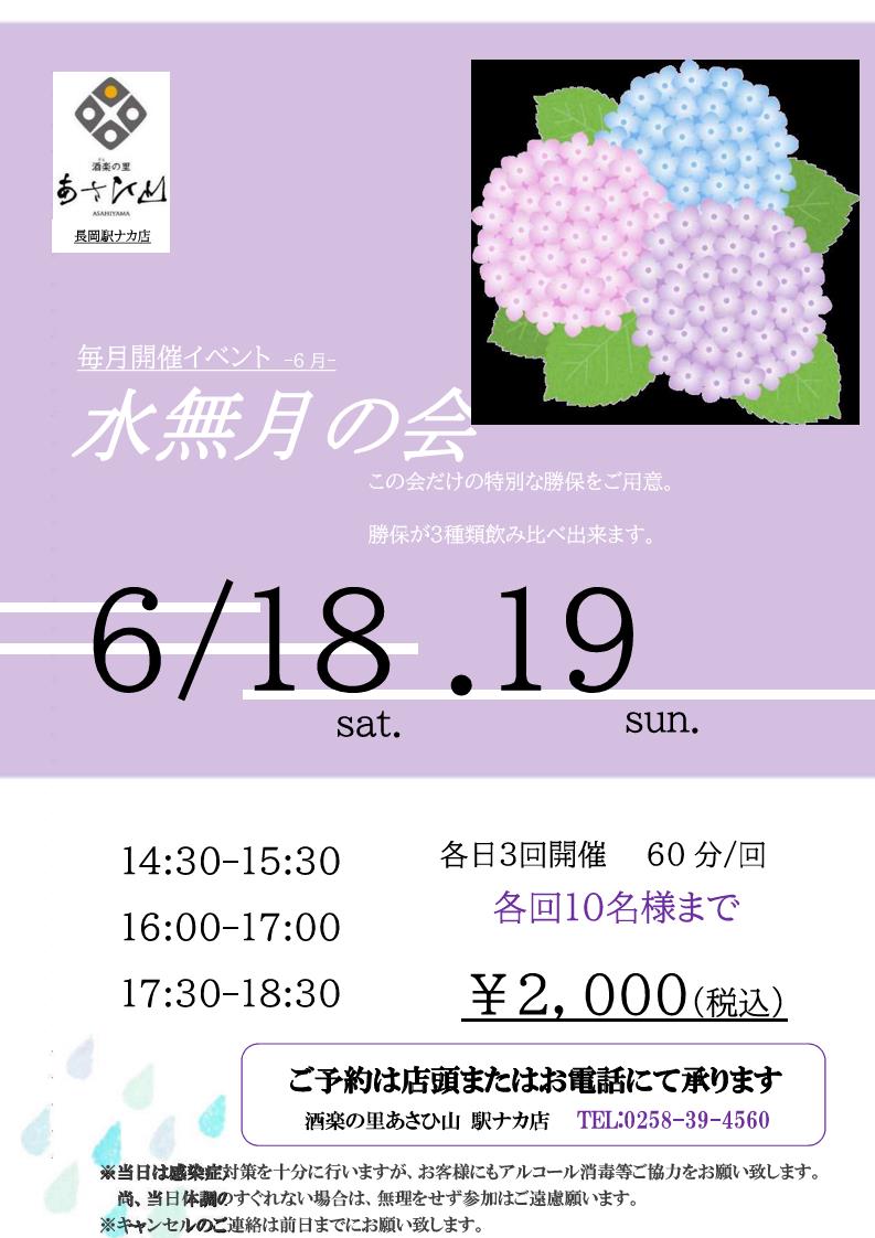 【終了】≪酒楽の里あさひ山 駅ナカ店≫毎月開催イベント「水無月の会」