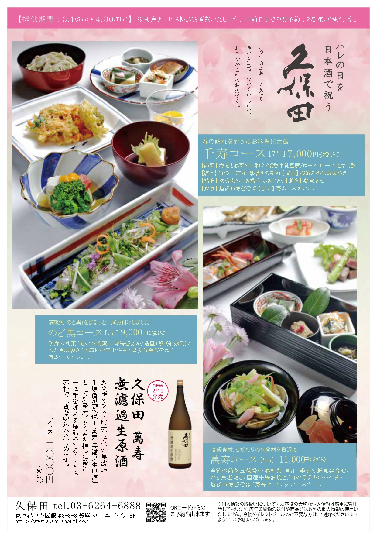 久保田では、3月より春にピッタリな季節コースを各種ご用意いたしました。