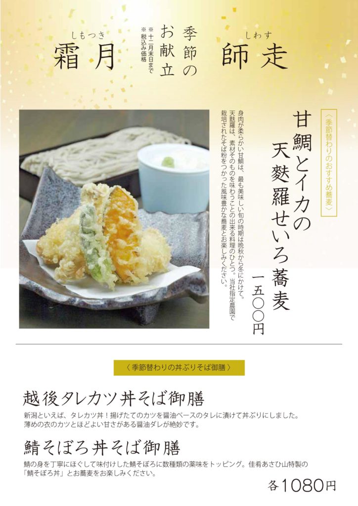 『甘鯛とイカの天麩羅せいろ蕎麦』