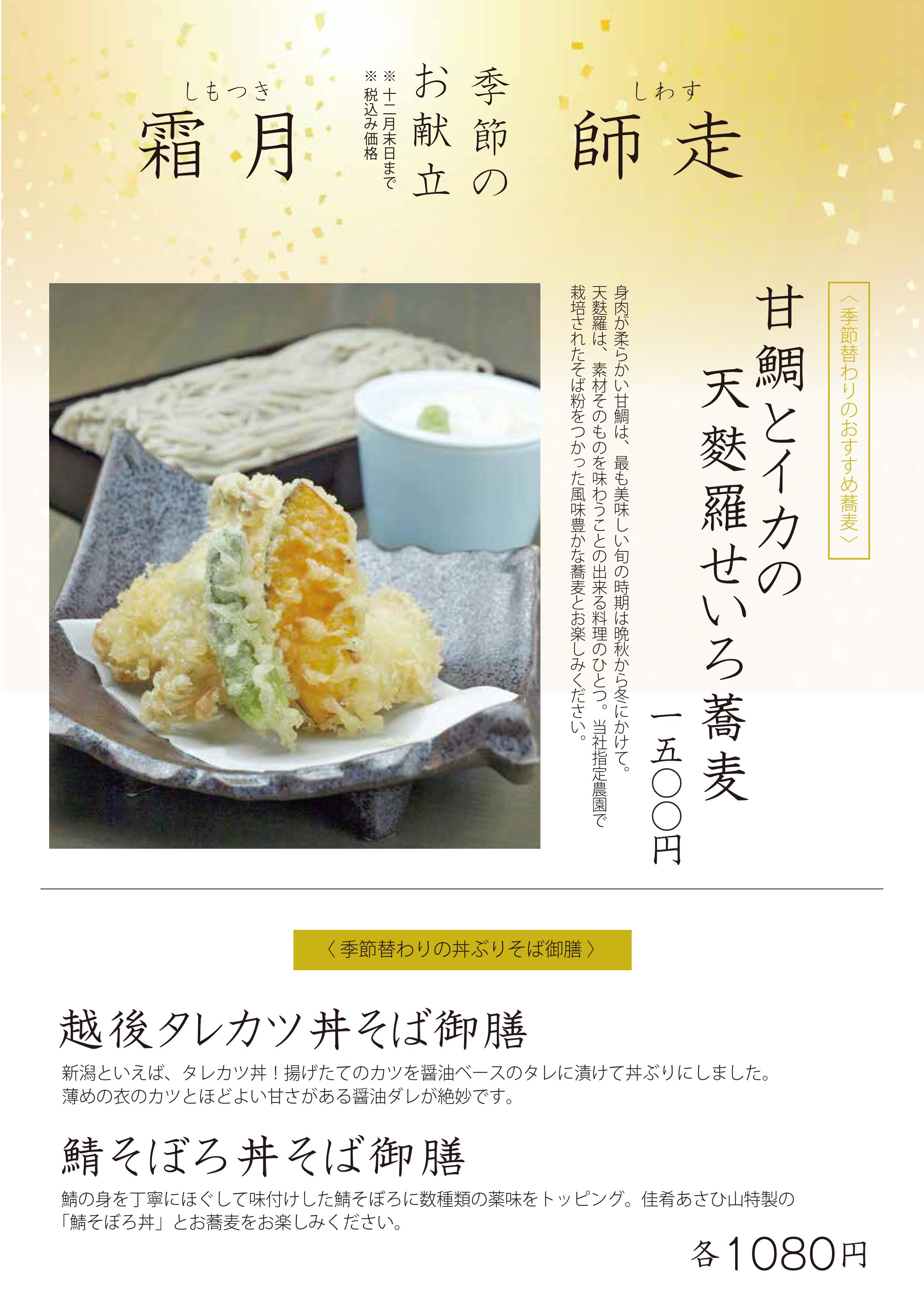 また季節替わりのおすすめ蕎麦御膳もご用意いたしました。