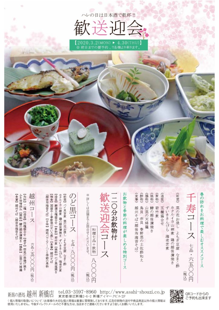 越州新橋店では、3月開始の歓送迎会向けにオススメの各種コースをご用意いたしました。