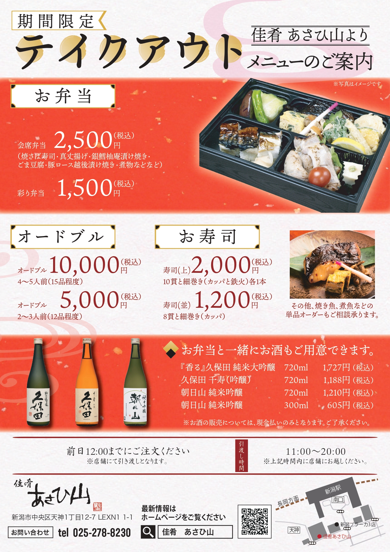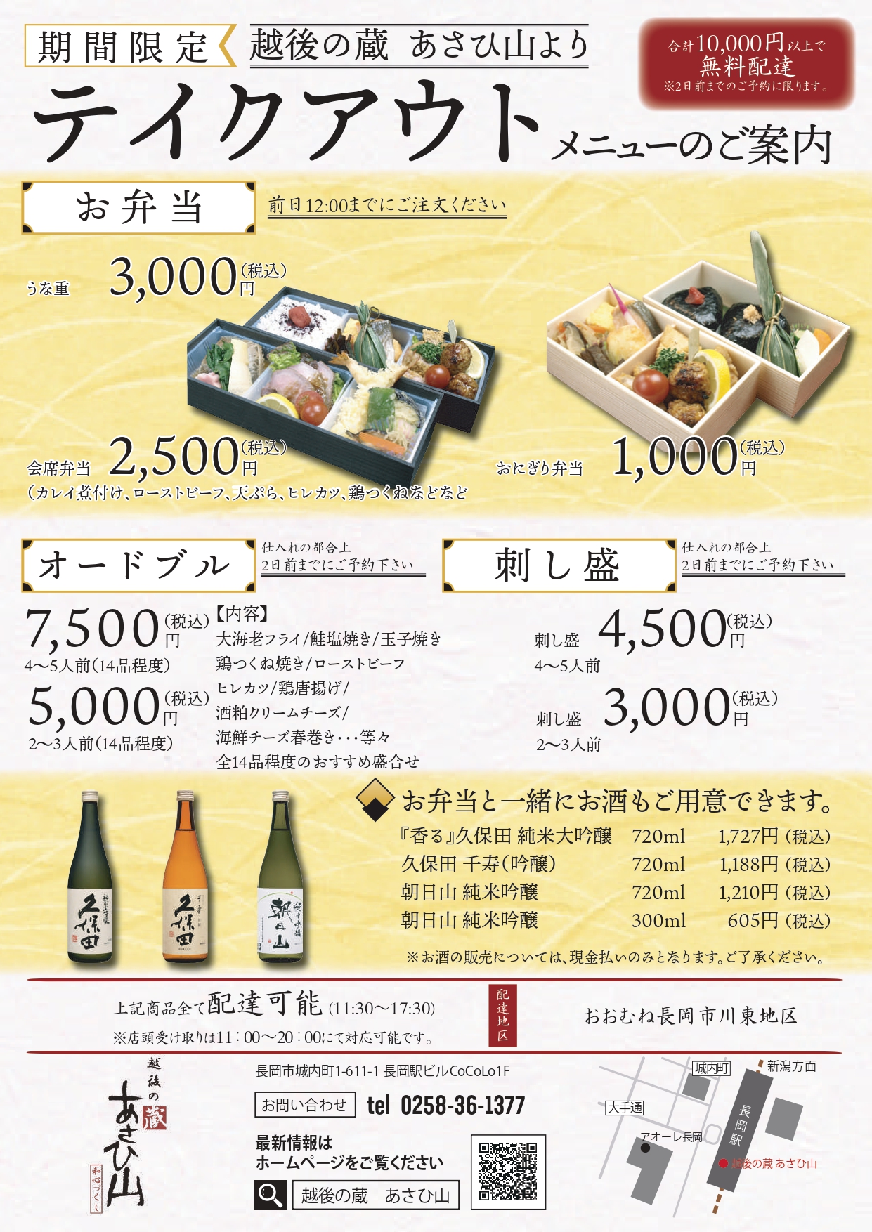 テイクアウトメニューのお知らせ(長岡市/新潟市)