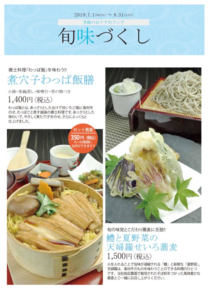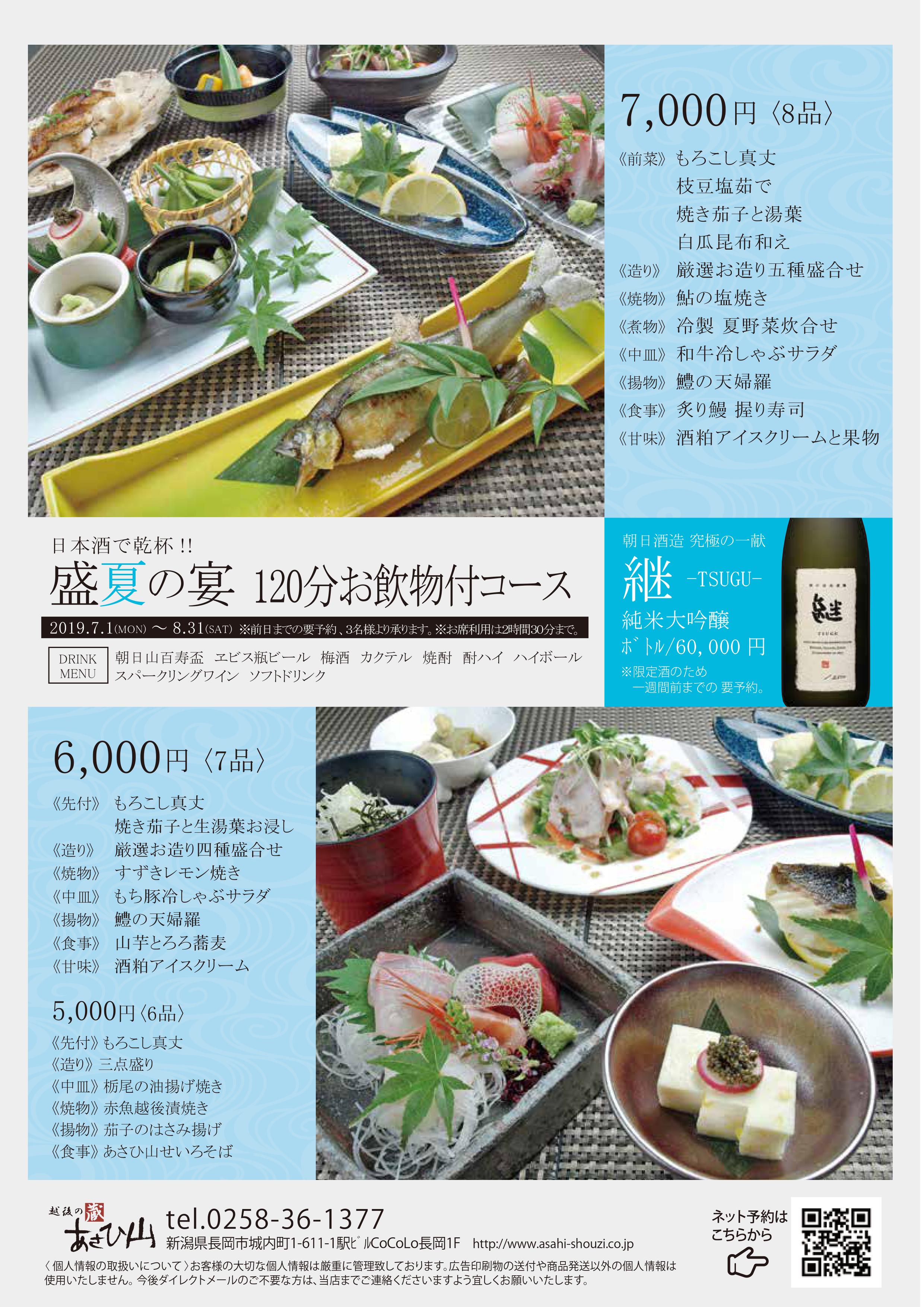 越後の蔵あさひ山では、「盛夏の宴 120分お飲物付コース」をご用意いたします。